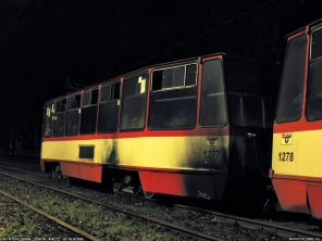 Aktualizacja 22.12.2008 14.33 W momencie uszkodzenia sieci trakcyjnej nie zadziałały zabezpieczenia w podstacji trakcyjnej Stogi. Zerwany przewód jezdny wywołał pożar w wagonie #1277. Konieczna była interwencja Państwowej Straży Pożarnej. Podjęta została decyzja o kasacji obu wagonów.